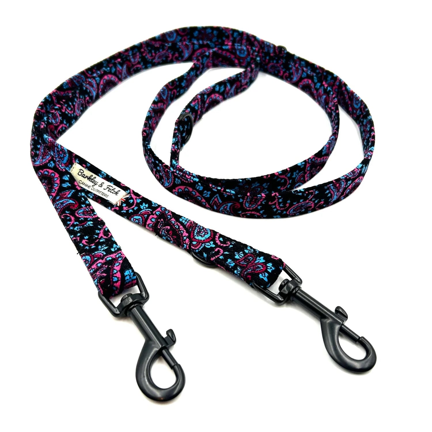 Blue Paisley Corduroy Multiway 2M Double End Dog Lead