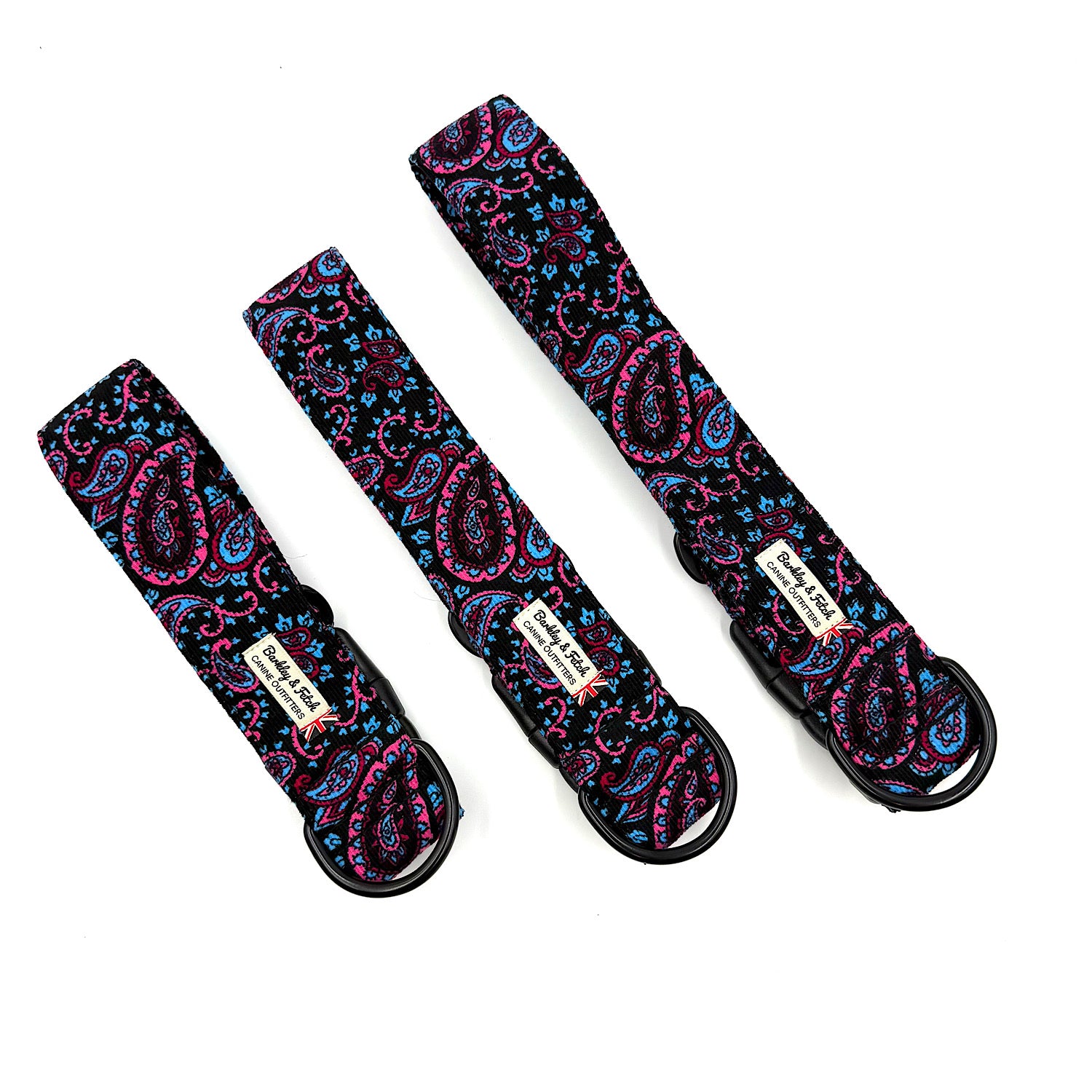 Blue Paisley Corduroy handmade WIDE dog collar with locking clasp.