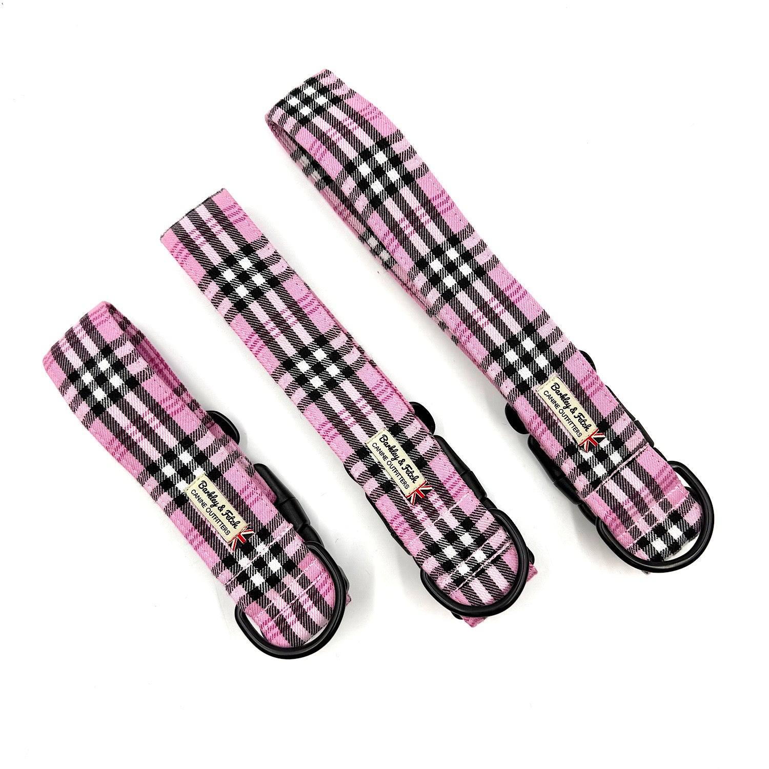 PinkBerry Check handmade WIDE dog collar with locking clasp.